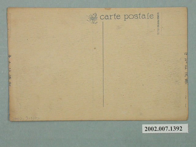 1.本物件為以新築中之臺南神社為主題之明信片,正面為新築中之臺南神社黑白照片,畫面中可見除鳥居外,大部份配件均已拆除,而正殿部分正在重新蓋築,下方有1段文字「臺南神社(新築中)(臺南州)」;背面為空白明信片直式書寫面,以深藍色單色印刷,左上為郵票黏貼處,黏貼處下方有「SEIUNDO PRINTING CO. LTO.」字樣,上方有「郵便はかき」字樣,左側有「carte postale」字樣與1天馬圖案。2.神社於臺灣的興建,與殖民政府想透徹進行皇民化運動有關。臺灣第一座神社為西元1897年建的開山神社,其目的為藉由鄭成功其母為日本人,作為統治臺灣的合理根據,而臺灣地區神社暴增於1936至1940年間,即是配合皇民化運動之進行。臺南神社曾為北白川宮能久親王臺南御遺跡所,即1895年親王南下平定亂事時於臺南居住之所,本為當地豪族吳汝祥宅邸,親王過世後,將其使用過之房間、器物進行保存,1901年竣工。後於1920年起建神社,社殿以阿里山之檜木建造,主要祭祀北白川宮能久親王,1923年竣工,1925年被列為官幣中社,現已拆除,原址現為忠義國小及臺南市美術館二館。