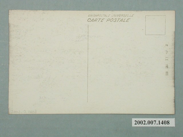 1.本物件為以開山神社為主題之明信片,正面為神社內部黑白照片,畫面中可見正殿之側景,正殿前有1亭,置有賽錢箱,氣氛莊嚴而肅然,左下有1段文字「(台南名所)開山神社」;背面為空白明信片直式書寫面,以黑色單色印刷,左上有郵票黏貼處,上方有「郵便はかき」字樣,左側有「UNIONPOSTALE UNIVERSELLE」、「CARTE POSTALE」字樣。2.神社於臺灣的興建,與殖民政府想透徹的進行皇民化運動有關。臺灣地區神社暴增於西元1936至1940年間,即是配合皇民化運動之進行。開山神社位於今臺南市中西區,清領時期為開臺聖王廟;1875年沈葆楨奏請朝廷改稱其為延平郡王廟(又稱延平郡王祠),主奉鄭成功;1897年日本殖民政府欲利用鄭成功之母為日本人田川氏此點,供奉鄭成功及其母親,以彰顯日本於臺灣統治的正當性,故將此改為開山神社,列為縣社。目前中央正殿設有鄭成功塑像與神位,左為甘輝將軍、右為張禮將軍,後殿祭祀其生母田川氏,左殿為監王祠祀有鄭克塽,右殿則為寧靖祠,祀有寧靖王及其五妃。