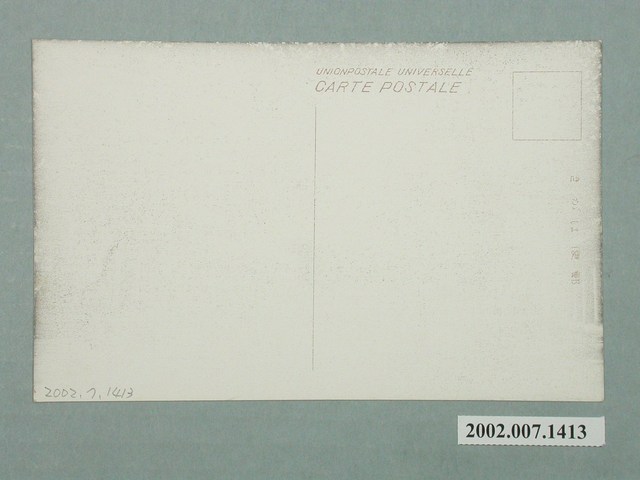 1.本物件為以開山神社為主題之明信片,正面為神社內部黑白照片,畫面中可見正殿之正面景,亦可見兩側拜殿,正殿前有1亭,置有賽錢箱,氣氛莊嚴而肅然,右下有1段文字「(台南名所)開山神社」;背面為空白明信片直式書寫面,以黑色單色印刷,左上有郵票黏貼處,上方有「郵便はかき」字樣,左側有「UNION POSTALE UNIVERSELLE」、「CARTE POSTALE」字樣。2.神社於臺灣的興建,與殖民政府想透徹的進行皇民化運動有關。臺灣地區神社暴增於西元1936至1940年間,即是配合皇民化運動之進行。開山神社位於今臺南市中西區,清領時期為開臺聖王廟;1875年沈葆楨奏請朝廷改稱其為延平郡王廟(又稱延平郡王祠),主奉鄭成功;1897年日本殖民政府欲利用鄭成功之母為日本人田川氏此點,供奉鄭成功及其母親,以彰顯日本於臺灣統治的正當性,故將此改為開山神社,列為縣社。目前中央正殿設有鄭成功塑像與神位,左為甘輝將軍、右為張禮將軍,後殿祭祀其生母田川氏,左殿為監王祠祀有鄭克塽,右殿則為寧靖祠,祀有寧靖王及其五妃。