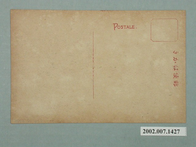 1.本物件為以阿緱神社為主題之明信片,正面為阿緱神社黑白照片,畫面為參道上向正殿取景,可見參道旁的石燈籠,與前方鳥居,更遠處即為正殿,右下有1段文字「屏東阿緱神社」;其背面為空白明信片直式書寫面,以紅色單色印刷,左上有郵票黏貼處,上方有「郵便はかき」字樣,左側有「 POSTALE」字樣。2.神社於臺灣的興建,於西元1936至1940年間最為盛行,與殖民政府想透徹的進行皇民化運動有關。臺灣第一座神社為1897年建的開山神社,其目的為藉由鄭成功其母為日本人,作為統治臺灣的合理根據。阿緱神社建於1919年,內有祀奉北白川宮親王,1926年列為縣社,現為屏東縣立田徑場。