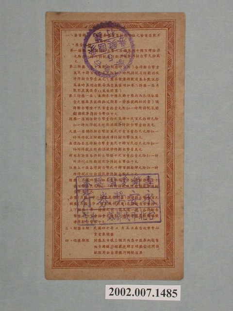 基本發行張數為五十萬張,直式鈔券式設計,褐色網底紋邊框,由上而下分別為,刊頭(第三十二期),「愛國獎券」白紋,框左右裝飾以卷渦狀莨苕葉,「士農工商」人物圖像立於中國大陸及台灣版圖上,面額新台幣伍圓,由右至左雙框紅底白字呈現,編號AH662151,編號下飾雙梅花及愛國獎券浮水印,5和伍字樣飾以團花形框置於框底兩角,臺灣省政府委託臺灣銀行發行,中央印製廠台北廠。