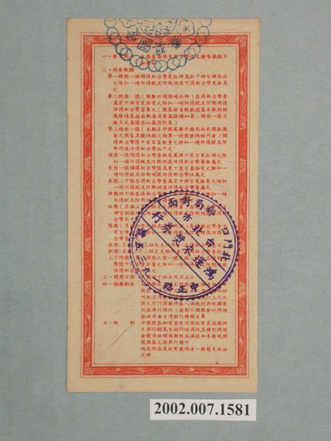 基本發行張數為八十萬張,直式鈔券式設計,中央印製廠,橘色網底框,刊頭「第壹佰貳拾捌期」,「愛國獎券」四字白文置於框內,框飾莨苕葉等西洋紋飾,以峨嵋金頂的圖案為軸心,左右以「打破鐵幕」、「拯救同胞」兩行字直寫於圖案兩旁,面額新台幣伍圓,白文置於框內,左右飾莨苕葉,編號EH834793,編號下飾雙梅花及愛國獎券浮水印,「反共復國」四個字,置於四角,臺灣省政府委託臺灣銀行發行,期數「128」以阿拉伯數字白文置於框下並置中,左右飾西洋花紋。