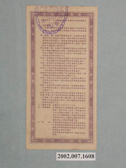基本發行張數為八十萬張,直式鈔券式設計,中央印製廠,紫色網底框,刊頭「第壹佰伍拾伍期」,「愛國獎券」四字白文置於框內,框上飾莨苕葉及連續弧線,以臺南開元寺的圖案為軸心,「台南開元寺」四字置於圖案右邊,面額新台幣伍圓,白文置於框內,框左右飾莨苕葉,上下飾連珠紋,編號FL407444,編號下飾雙梅花及愛國獎券浮水印,「勵行節約」四個字裝飾以花草紋,置於四角,臺灣省政府委託臺灣銀行發行,期數「155」以阿拉伯數字白文置於框下並置中,左右飾草紋。