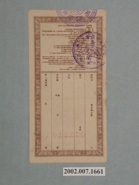 基本發行張數為八十萬張,直式鈔券式設計,中央印製廠,深褐色網底框,刊頭內置「臺灣省政府委託臺灣銀行發行」、「愛國獎券」隸字,由右至左書寫,方框內繪製新竹東門的圖案,「新竹東門」四字橫式置於圖右上方,「新台幣」、「伍圓」雙排字下飾網底紋,以卷葉紋及莨苕葉等西洋紋飾框,編號911117,編號下飾雙梅花愛國獎券浮水印,「第貳佰零捌期」,「重整道德」四個字,飾花框置於四角,期數「208」以阿拉伯數字白文置於框下並置中,左右飾西洋紋飾。