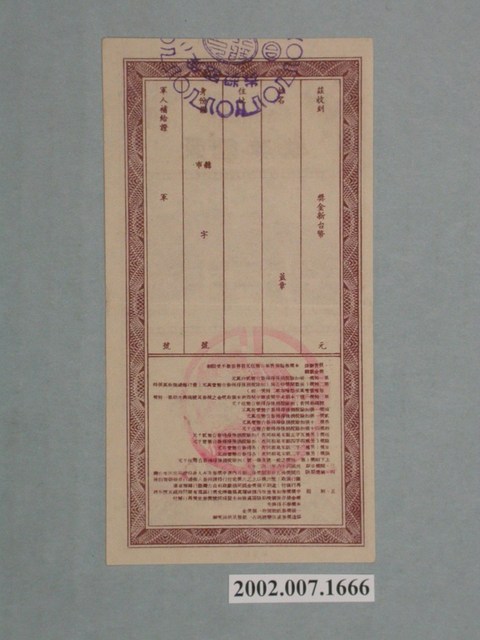 基本發行張數為八十萬張,直式鈔券式設計,中央印製廠,紫色網底框,刊頭內置「臺灣省政府委託」、「臺灣銀行發行」、「愛國獎券」隸字,由右至左書寫,方框內繪製南京中山陵的圖案,「南京中山陵」五字橫式置於圖右上方,「新台幣」、「伍圓」白紋雙排字下飾雙圈網底紋,以莨苕葉等西洋紋飾框,編號262049,編號下飾雙梅花愛國獎券浮水印,「第貳佰壹拾叁期」,「平均地權」四個字,花框置於四角,期數「213」以阿拉伯數字白文置於框下並置中,左右飾西洋紋飾。