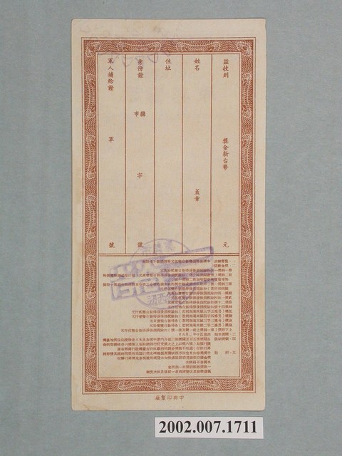 基本發行張數為八十萬張,直式鈔券式設計,中央印製廠,淺褐色網底框,刊頭內置「臺灣省政府委託」、「臺灣銀行發行」、「愛國獎券」隸字,方框內繪製雲南大理一塔寺的圖案,「雲南大理一塔寺」七字橫式置於圖案右上方,「新台幣」、「伍圓」白紋雙排字飾花框網底紋,編號682908,編號下飾雙梅花愛國獎券浮水印,「第貳佰伍拾捌期」,「維護自由」四個字,飾冠狀莨苕葉置於四角,期數「258」以阿拉伯數字白文置於框下並置中,左右飾西洋紋飾,框下「民國五十年二月五日開獎」。