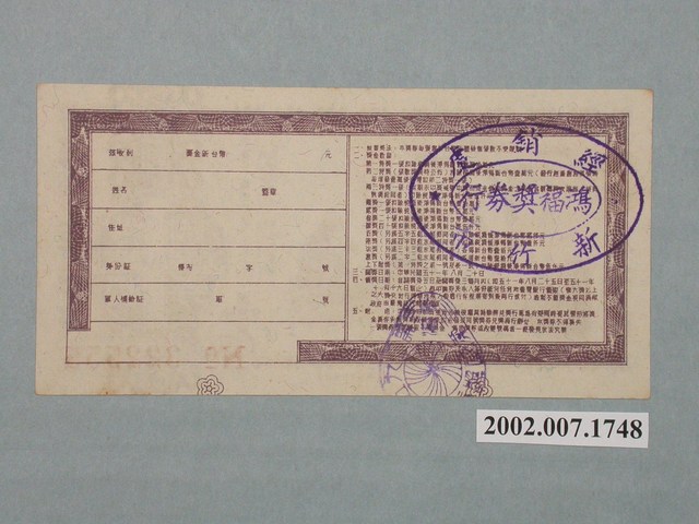 基本發行張數為八十萬張,橫式設計,梁又銘繪製,中央印製廠,紫色文底框,框飾幾何線條,刊頭飾一錶形網框,表帶內置「新台幣伍圓」四字,圓框內十字分割內右左上下置「愛國獎券」四字,十字橫紋內「民國五十一年八月二十日開獎」,下橫列底飾花紋編號「No322555」,往左賣身葬父圖,題跋及題詩「漢 董永 賣身葬父(二十四孝之一)」,「葬父貸孔方,仙姬陌上逢;織縑償債主,孝感動蒼穹。」置於圖右,「第295期」置於題詩下方,框下小字「臺灣銀行印刷所」。