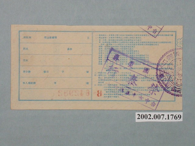 基本發行張數為六十萬張,橫式設計,藍、黃色紋框,由右至左,刊頭菊花紋,下圓框內「2乙‧聯」,「服從領袖、貫徹命令」,「愛國獎券」,「第316期」,「中華民國五十二年七月五日開獎」,下列編號「B 642982」底飾「愛國獎券」浮水印,左上「伍圓」、「新臺幣」,「宋 汝窯 粉青奉華尊」圖樣飾卷葉及幾何格紋。