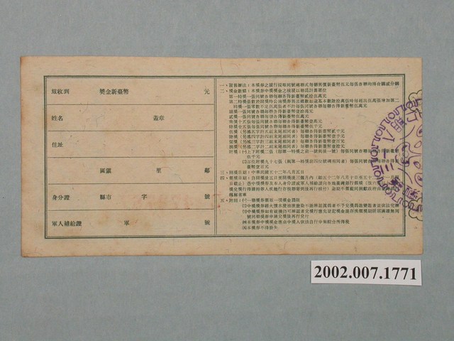 基本發行張數為六十萬張,橫式設計,紅、綠色紋框,由右至左,刊頭右下花葉紋,「愛國獎券」,「人人要發揮公共道德」,「新臺幣伍圓」,「第318期」,上列「中華民國五十二年八月五日開獎」,下列編號「B 472767」底飾愛國獎券浮水印,往左為「明 宣德窯 寶石紅僧帽壺」圖,圖飾莨苕葉,圖右下圓框內「2乙‧聯」,框上下飾連續卷葉紋。