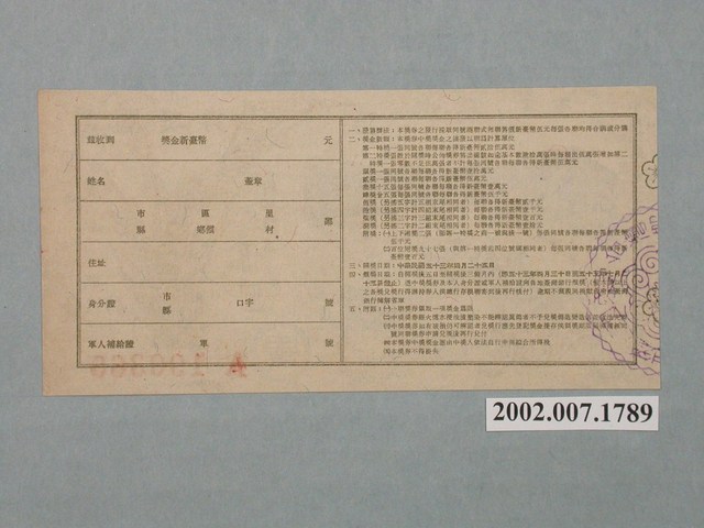 基本發行張數為六十萬張,橫式設計,由右至左,稻穗上列上橫列「愛國獎券」,左「新臺幣伍圓」,圓框「甲聯」,右「一心一德,群策群勵。」,「第336期」,下編號「A190365」底飾愛國獎券浮水印,往左開光內飾「石門水庫」大壩圖案,圖左「中華民國五十三年四月二十五日開獎」,下飾心狀花卷紋,。
