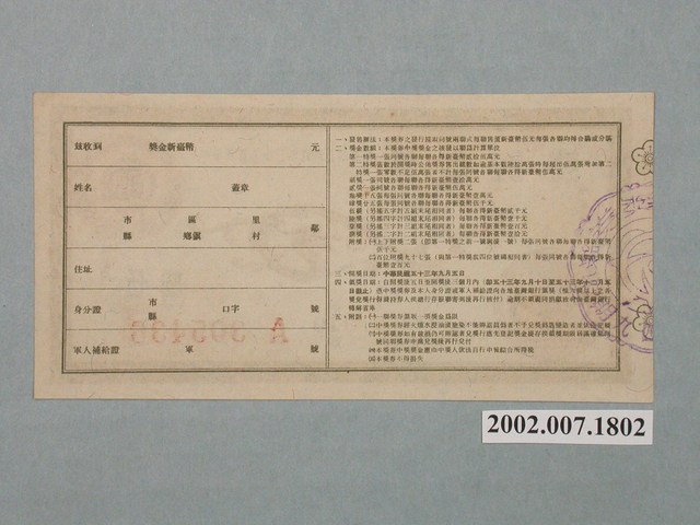 回首龍紋、檢舉匪諜、政府有獎、雙聯式