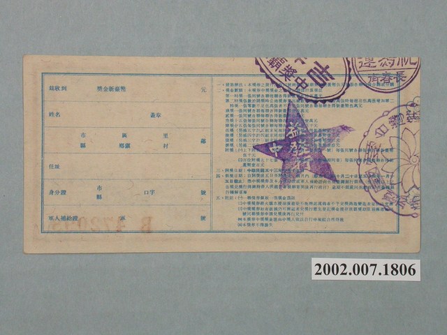 基本發行張數為六十萬張,橫式設計,「中華民國五十三年十月十五日開獎」,右下方框編號「B472098」底飾愛國致富浮水印,「總統府懸掛雙十及國旗」底圖,圖上列「愛國獎券」,「臺灣省政府委託臺灣銀行發行」,下「第353期」,右「新臺幣伍圓」,左下圓框「乙聯」。