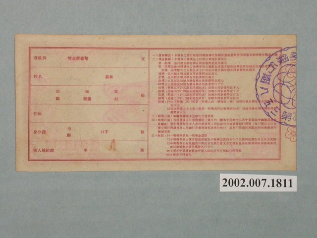 基本發行張數為六十萬張,橫式設計,上列「愛國獎券」,中心「新臺幣伍圓」底飾花紋,下「第358期」,右方「中華民國五十三年十二月五日開獎」,下列編號「A 191194」底飾愛國獎券浮水印,左方「臺灣省政府委託臺灣銀行發行」,左下圓框「甲聯」,樓閣圖。