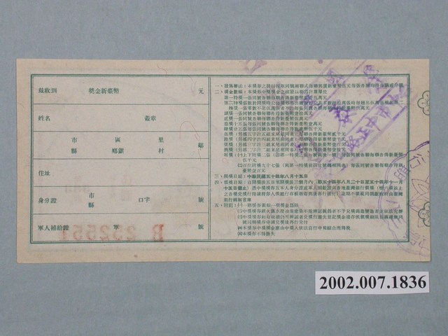 基本發行張數為六十萬張,橫式設計,葡萄藤圖,圖右下「中華民國五十四年八月十五日開獎」,「第383期」,「新臺幣伍圓」,右下下列編號「B252551」底飾愛國獎券浮水印,圖左上「愛國獎券」,「臺灣省政府委託臺灣銀行發行」,左下「乙聯」圓框。