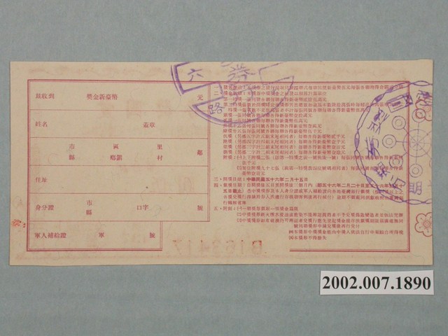 基本發行張數為六十萬張,橫式設計,此期逢春節改為四聯式,由右至左,燭火香爐圖案,香爐上「乙聯」,上列「愛國獎券」,「中華民國五十六年二月十五日開獎」,「新臺幣伍圓」,「第437期」,旁編號「B163417」,「一團和氣娃娃」圖,左下「臺灣省政府委託臺灣銀行發行」,左「年年如意 歲歲平安」。