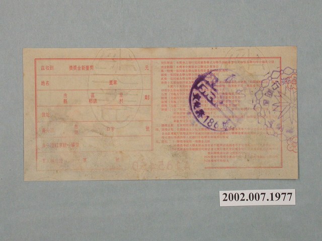 基本發行張數為六十萬張,橫式設計,「臺灣省政府委託臺灣銀行發行」,「中華民國五十八年七月十五日開獎」,「新臺幣伍圓」,右下角國民生活規範(食的方面):「取用菜餚,應取靠近自己一面者,切忌於碗盤中翻揀。」「愛國獎券」,「第524期」,「甲聯」圓框,下列編號「A185460」。