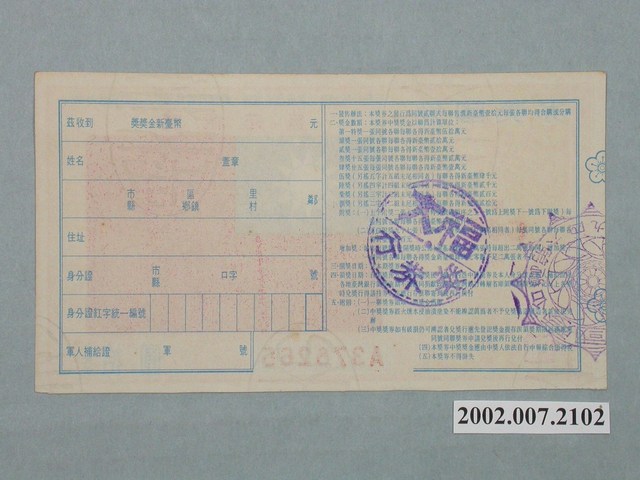 基本發行張數為六十萬張,橫式設計,「中華民國六十二年元月五日開獎」,「臺灣省政府委託臺灣銀行發行」,「慶祝元旦」國旗圖,底列「新臺幣拾圓」,編號「A378265」勤勞儉樸浮水印,「愛國獎券」,「第649期」,「甲聯」。