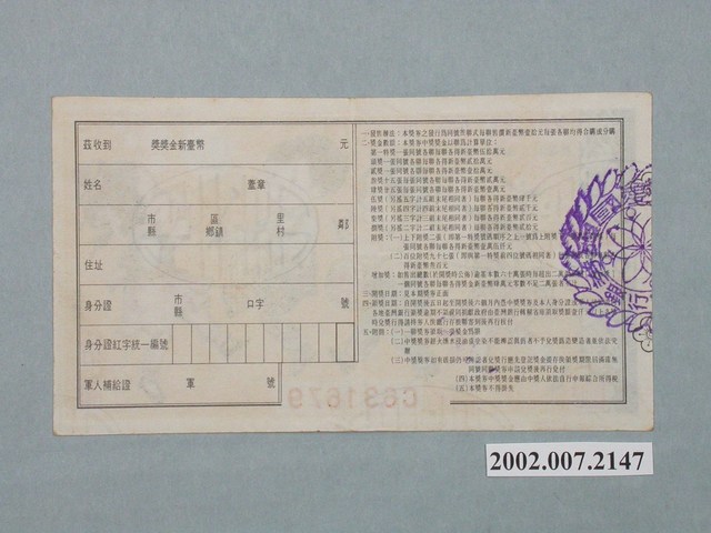 基本發行張數為六十萬張,橫式設計,「慶祝兒童節」圖,底列編號「C631679」篤實誠信浮水印,「愛國獎券」,「中華民國六十三年四月五日開獎」,「臺灣省政府委託臺灣銀行發行」,「第694期」,「新臺幣拾圓」,「丙聯」。