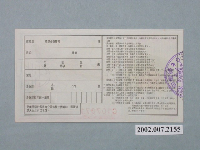 基本發行張數為六十萬張,橫式設計,「(宋) 汴京 金明池 龍舟競渡 」圖,底列編號「C107071」勤勞儉樸浮水印,「愛國獎券」,「中華民國六十三年六月二十五日開獎」,「臺灣省政府委託臺灣銀行發行」,「第702期」,「新臺幣拾圓」,「丙聯」。根據參考資料及梁又銘家屬提供的資料佐證,梁又銘先生自1962年起參與愛國獎券故事圖案繪製,於1971年介紹學生林幸雄參與愛國獎券製作(599期起),主要負責設計周邊圖案,以及特殊慶典、故宮文物、風景等圖案繪製。歷史故事畫稿仍由梁又銘先生提供,並多數有梁之鈐印,直到梁於1984年9月26日逝世後,愛國獎券仍持續發行其遺稿直到第1107期。而林幸雄先生則參與愛國獎券製作直到最後一期1171期。