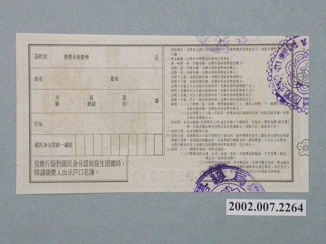 基本發行張數為六十萬張,一張同號三聯,橫式設計。愛國獎券,開獎日期中華民國六十六年七月五日,臺灣省政府委託臺灣銀行發行,「第811期」,新台幣貳拾圓,乙聯,編號「B575212」,底飾勤勞儉樸浮水印。唐、白居易、老嫗解詩圖,題跋:白居易字樂天,每作詩,必問於老嫗曰:「解否」?答曰:「能解」。則錄之,若云「不解」,則復易之,必令老嫗解而後已。根據參考資料及梁又銘家屬提供的資料佐證,梁又銘先生自1962年起參與愛國獎券故事圖案繪製,於1971年介紹學生林幸雄參與愛國獎券製作(599期起),主要負責設計周邊圖案,以及特殊慶典、故宮文物、風景等圖案繪製。歷史故事畫稿仍由梁又銘先生提供,並多數有梁之鈐印,直到梁於1984年9月26日逝世後,愛國獎券仍持續發行其遺稿直到第1107期。而林幸雄先生則參與愛國獎券製作直到最後一期1171期。