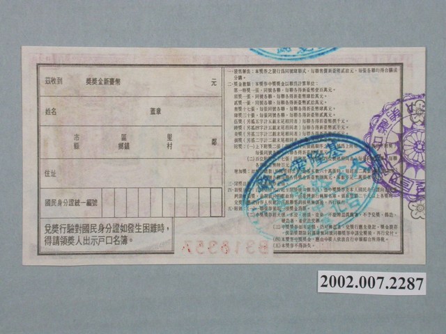 器物類 > 商業財產 > 彩券