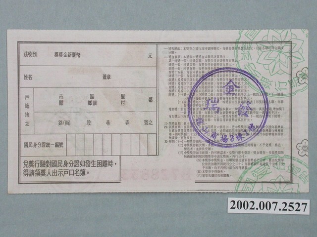 器物類 > 商業財產 > 彩券