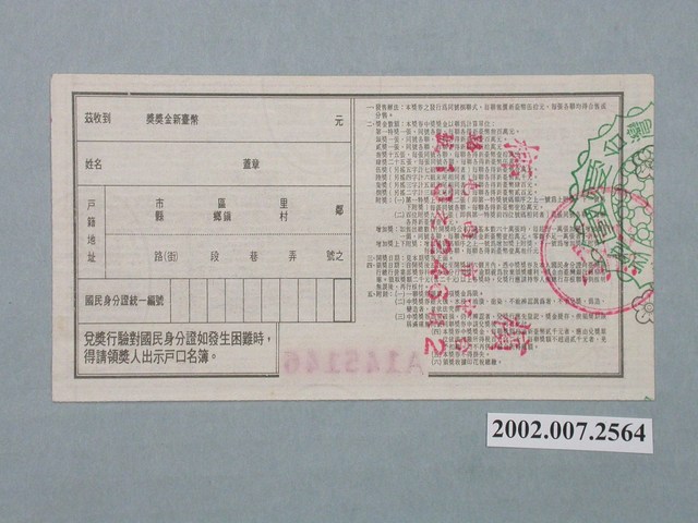 基本發行張數為六十萬張,一張同號八聯,橫式設計。愛國獎券,開獎日期中華民國七十四年十一月五日,臺灣省政府委託臺灣銀行發行,「第1111期」,新台幣伍拾圓,甲聯,編號「A145146」。十大建設之一「中國鋼鐵公司」實景攝影圖。