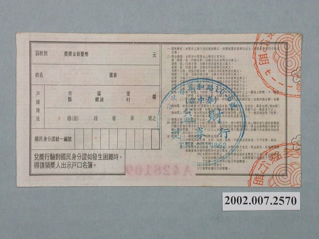 基本發行張數為六十萬張,一張同號八聯,橫式設計。愛國獎券,開獎日期中華民國七十五年元月五日,臺灣省政府委託臺灣銀行發行,「第1117期」,新台幣伍拾圓,甲聯,編號「A428109」。本期發行適逢元旦,中華民國地圖與國旗圖,下方代表士農工商軍的人們,右方印有「慶祝元旦」。