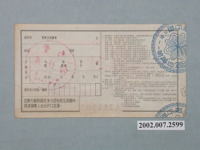 基本發行張數為六十萬張,一張同號八聯,橫式設計。愛國獎券,開獎日期中華民國七十五年十月二十五日,臺灣省政府委託臺灣銀行發行,「第1146期」,新台幣伍拾圓,甲聯,編號「A214901」。本期發行適逢光復節,臺灣地圖與國旗圖以及各項正在發展的實業圖。