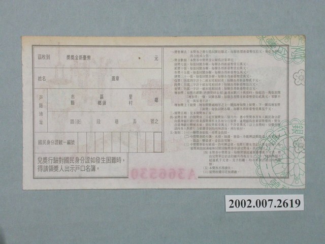 基本發行張數為六十萬張,一張同號十聯,橫式設計。愛國獎券,開獎日期中華民國七十六年十月十一日,臺灣省政府委託臺灣銀行發行,「第1166期」,新台幣伍拾圓,甲聯,編號「A366530」。慶祝國慶圖。