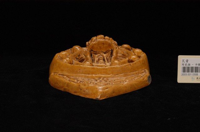 傳統筒瓦為素燒紅瓦,多用於廟宇屋頂,1970年代以後大部分改為上釉琉璃瓦,素燒作法幾乎絕跡。琉璃瓦當則改以獅頭裝飾為多。因此本件瓦當較可能為1970 年代以後製造。