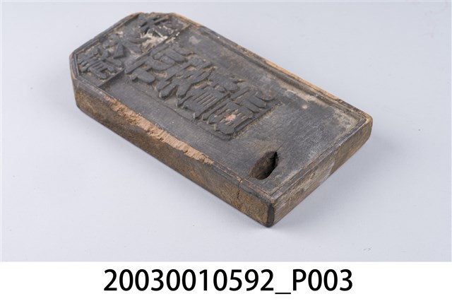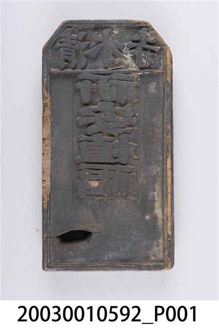 本件為清水寺祈安植福印版,以一塊長方形薄木板陽刻而成,印版分上下兩部分,上面橫書「清水寺」,下面直書「祈安植福」。印版左下角破損一個小洞。印版結合雕刻和印刷藝術,古代廣泛運用在刊印書籍,宗教民俗的版畫、符令、籤詩、疏文等印刷物上。