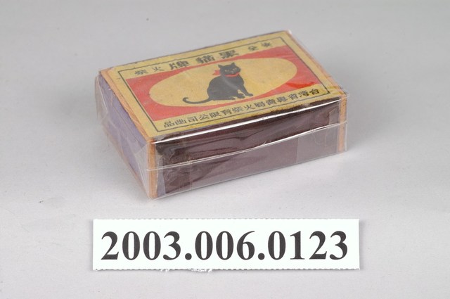1.本物件為臺灣省專賣局火柴有限公司出品之黑貓牌安全火柴,火柴盒為木質,外有包裝紙包覆,其商標為一隻黑貓,上方寫有「黑貓牌安全火柴」字樣,並標明由「台灣省專賣局火柴有限公司出品」。此盒火柴外有塑膠包裝,無法斷定為未開封或是經由後人包裝。