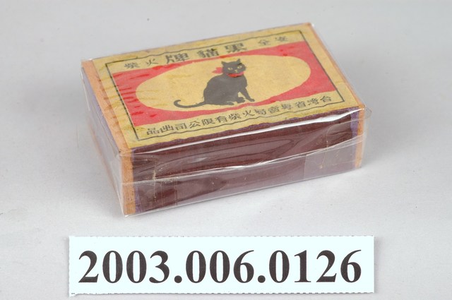 1.本物件為臺灣省專賣局火柴有限公司出品之黑貓牌安全火柴,火柴盒為木質,外有包裝紙包覆,其商標為一隻黑貓,上方寫有「黑貓牌安全火柴」字樣,並標明由「台灣省專賣局火柴有限公司出品」。此盒火柴外有塑膠包裝,無法斷定為未開封或是經由後人包裝。