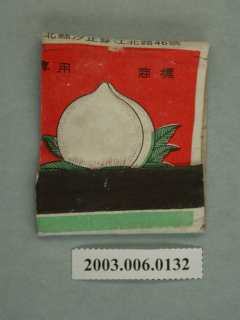1.本物件為永光火柴公司之火柴紙,上有「YUNG KUANG MATCH」字樣,中有一猴子圖樣,下方為「YUNG KUANG MATCH INDUSTRIAL CO.」,即為永光火柴工業公司,反面有一桃子圖樣與「專用商標」四字。此物件經摺疊,無法判定是紙張或是火柴盒拆卸過後壓縮而成,從汐止鎮此行政區可看出此物件時間位於光復後。
