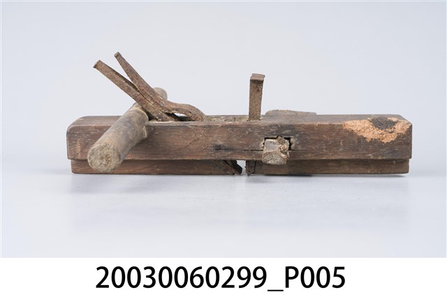 鉋刀是以削切薄木片的方式,將木料表面整平及光亮的工具。基本形式為長方體木料鉋臺,中挖凹槽,將鉋刃斜向置入凹槽內,使刀刃刃口於底面露出,上置壓鐵,並以鐵針固定。本件鉋刀則直接將鉋刃釘入鉋臺中,不置壓鐵與鐵針。鉋刀有鉋平面、弧面、線腳、凹槽等功能,鉋平面的稱平鉋,有長鉋、中鉋、短鉋,鉋線腳的稱為線鉋,鉋圓弧面的稱為翹鉋,鉋凹槽及直角邊角的稱為邊鉋,以及依特定物件所需而設計的鉋刀。工具店匠師依功能不同設計不同樣式的鉋刀,並訂製所需鐵件,加工鉋臺,安裝鐵件,完成鉋刀成品。