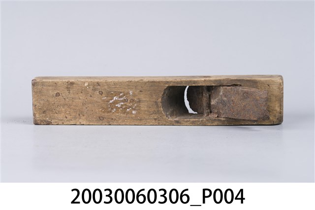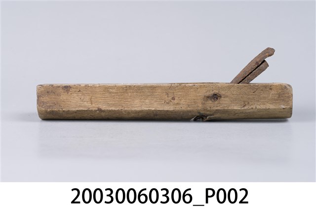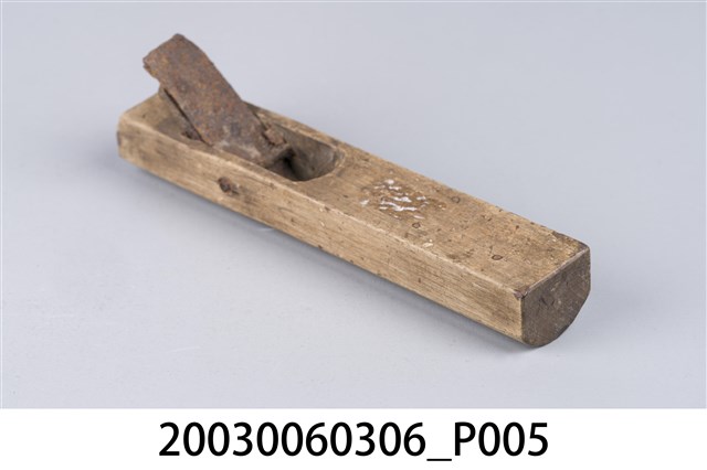 本件文物為木工工具鉋刀的一種,名為外圓鉋,又稱外丸鉋。外圓鉋為線鉋的一種,功能是用以鉋出凹弧的線腳或凹槽。鉋臺底部為半圓凸弧面,鉋刃口長度2.7公分。