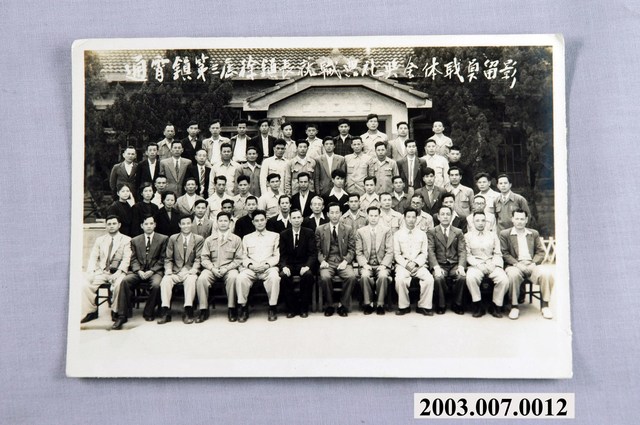 此物件為黑白照片,為團體合照,背景為通霄鎮舊鎮公所正門,相片頂端有白色字體註記「通霄鎮第三屆徐鎮長就職典禮與全体職員留影」,其中第一排由左數來第7位人物為時任鎮長的徐運火。 此物件提到之人物為徐運火為湯霄鎮的第二、三屆的民選鎮長,曾在1966年擔任苗栗縣議員。在其於1953年至1960年的鎮長任內籌設各級學校,並向國防部申請開放通霄海水浴場。 通霄位於苗栗縣西南部的沿海地區。此地最早為原住民道卡斯族「風呢樣」(Honeyan)聚落所在地。明鄭時期記載為「吞宵社」,並與另外七個聚落合稱「蓬山八社」,後於日治時期改名為「通霄」。通霄的大規模開墾始於康熙年間,此時期多為原住民開墾,後來於乾嘉年間閩粵人士才先後到來此地。