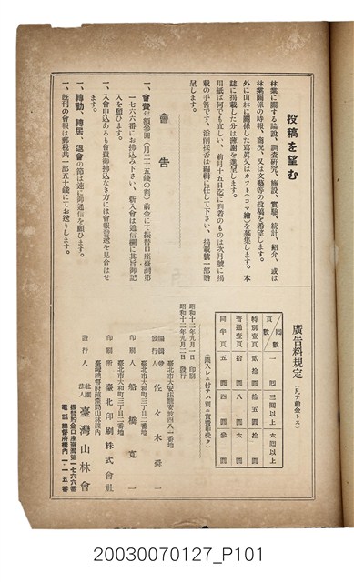 2. 本書原名為《臺灣山林會報》,最早發行於大正12年(1924),於第80期後更改為《臺灣の山林》。日治時期臺灣總督府為有效利用森林,於1925年實施了森林計劃,主要針對治水及國土保安。