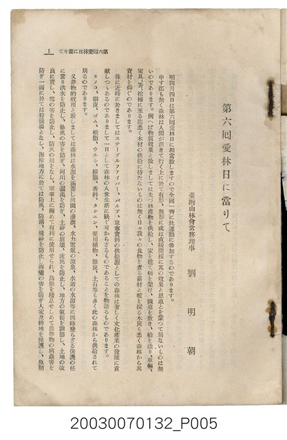 2. 本書原名為《臺灣山林會報》,最早發行於大正12年(1924),於第80期後更改為《臺灣の山林》。日治時期臺灣總督府為有效利用森林,於1925年實施了森林計劃,主要針對治水及國土保安。