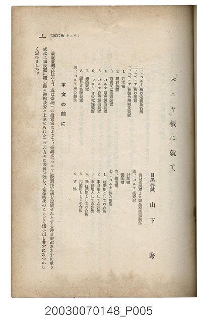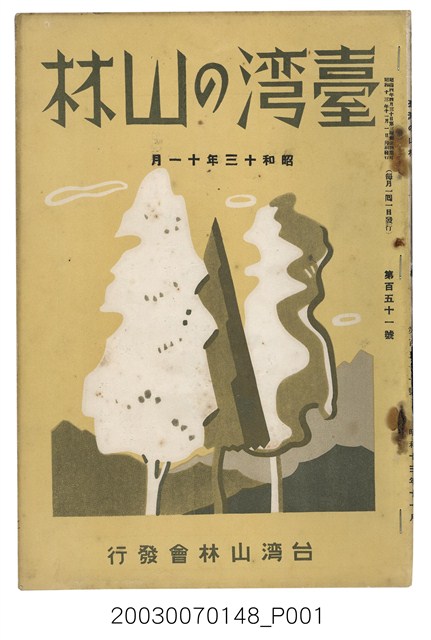 1. 本書為社團法人臺灣山林會發行的《臺灣的山林》,內容主要收錄了許多日本學者針對臺灣的山林地區、林業、公園事業、礦業等領域的研究發表文章。本書於昭和13年11月1日印刷及發行,為每月初發行的刊物;此為第151號。本刊所載內容包括:南阿聯邦針對相思樹的栽培、木炭的適性和製造方法、臺北市場出來合品價格表等。