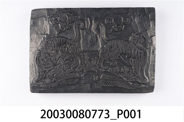本件為雙虎與鳳凰雙面印版,一塊長形木板雙面陽刻,一面雕刻雙虎縱橫於原野,民俗認為老虎兇猛,可驅邪辟煞。一面雕刻八卦框內鳳凰花卉圖,鳳凰是百鳥之王,象徵祥瑞。兩種動物在傳統民俗圖繪皆常見。印版結合雕刻和印刷藝術,古代廣泛運用在刊印書籍,宗教民俗的版畫、符令、籤詩等印刷物上。