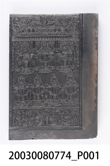 本件為七娘夫人神禡印版,殿宇內有七尊七娘夫人,最上層三尊,第二層有四尊,即為七位七娘媽,第三層有五位童子戲耍玩具,因為七娘媽是未滿十六歲孩童的守護神。神禡作為農曆七月七日「七夕」時,敬拜七娘媽神誕時所用,安奉七娘媽神禡於供桌上。印版結合雕刻和印刷藝術,古代廣泛運用在刊印書籍,宗教民俗的版畫、符令、籤詩、疏文等印刷物上。