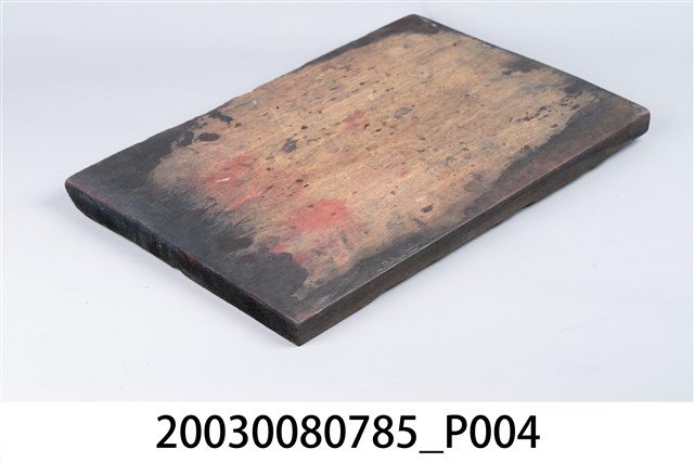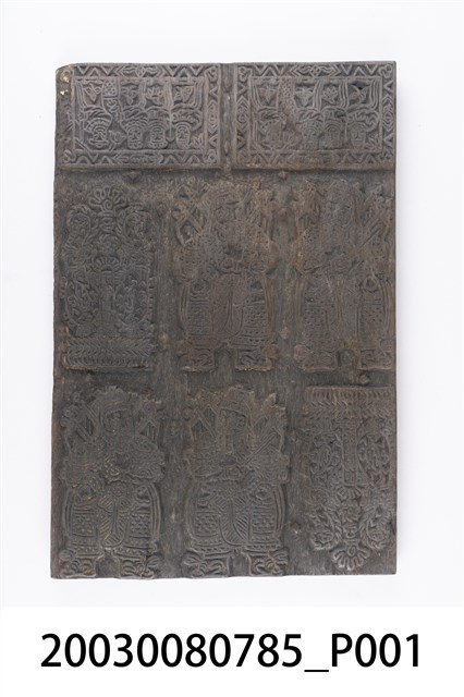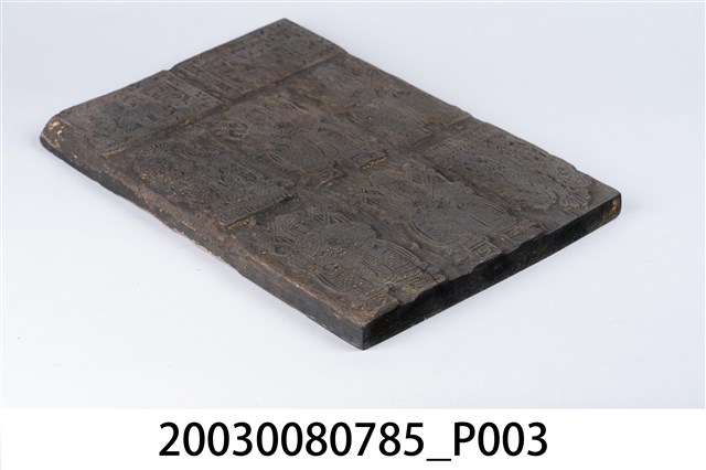本件為天公座印版,木雕印版上有「叩答恩光」字樣的色牌、福祿壽三仙和武將(門神)。印版結合雕刻和印刷藝術,古代廣泛運用在刊印書籍,宗教民俗的版畫、符令、籤詩等印刷物上。天公座為燈座一種,燈座為竹骨紙糊的工藝品,代表神尊臨時降臨壇場或宮廟中,接受信徒敬備豐盛的供品祭拜與祈求消災賜福,常見有天公座、三界公座、七娘媽亭等。