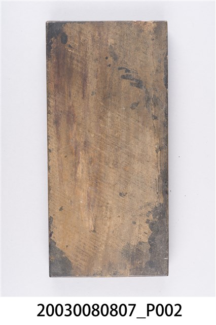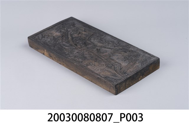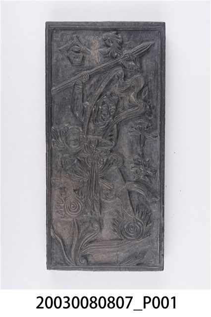 本件為中壇元帥神禡印版,由一塊薄方形木板陽刻而成,三太子腳踩風火輪,手持乾坤圈和火尖槍,刻「合家」、「平安」字樣。此項宗教版畫又稱「神禡」,民間俗稱「大符」,指的是紙製神像,以木刻印版印刷而成。請回家中可安放在神桌上或張貼在清淨處,加強神明守護家宅老少的平安。印版結合雕刻和印刷藝術,古代廣泛運用在刊印書籍,宗教民俗的版畫、符令、籤詩、疏文等印刷物上。