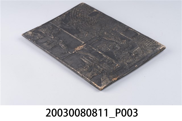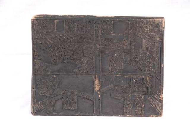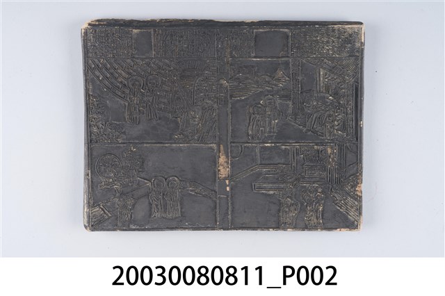 本件為觀音濟度圖印版,為一塊長方形木板雕刻,由四幅觀音故事圖畫組成,中間上方刻「觀音濟度圖」,左右兩旁文字,各敘述每一幅觀音的故事。此印版以傳說故事,引人發心向善,其典故可能出自《觀音濟度本願真經》。印版結合雕刻和印刷藝術,古代廣泛運用在刊印書籍,宗教民俗的版畫、符令、籤詩、疏文等印刷物上。
