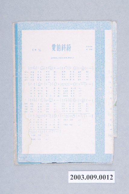 本件可拉長攤開內頁,一面為永華影業針對其電影公司及《翠翠》的文字介紹,以及永業影業即將上映的電影以各女主角宣傳照為主的廣告,除林黛外,尚有《一刻春宵》鷺紅、《玫瑰玫瑰我愛你》李麗華及《嫦娥》楊明等,另一面則是〈熱烘烘的太陽〉、〈不講理的姑娘〉、〈你真美〉、〈月下山歌〉、〈怎麼樣跟他講〉、〈愛的糾紛〉等6首電影《翠翠》配樂的歌譜。