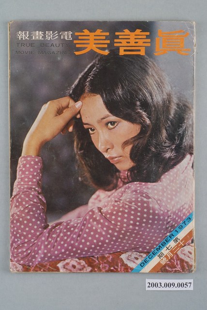 1.本物件為真善美電影畫報第7期,出版者為真善美電影畫報社,出版日期為民國62年12月1日。正面封面主體為一斜倚沙發把手,左手輕抵額頭,著紫底白點長袖襯衫女子,為演員徐楓。人物上方印「真善美電影畫報 TRUE BEAUTY MOVIE MAGAZINE」,右下角則以藍白黃三色分印「DECEMBER 1973」、「第七期」、「十二月號」。背面則為由香港鳳鳴影業公司拍攝之電影「浪」宣傳廣告。第7期內容包含「醜聞爆出醜聞」、「徐楓、宗華第一吻」等計37則報導及10頁彩色插頁,共100頁。