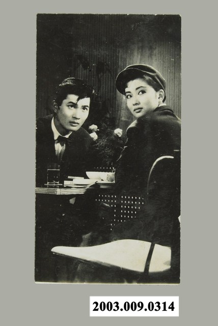 推測為日本電影黑白劇照,片名不詳。內容為一男一女兩人在餐廳的場景。