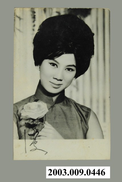 香港女明星凌波的黑白時裝照,本件上有凌波落款之簽名。